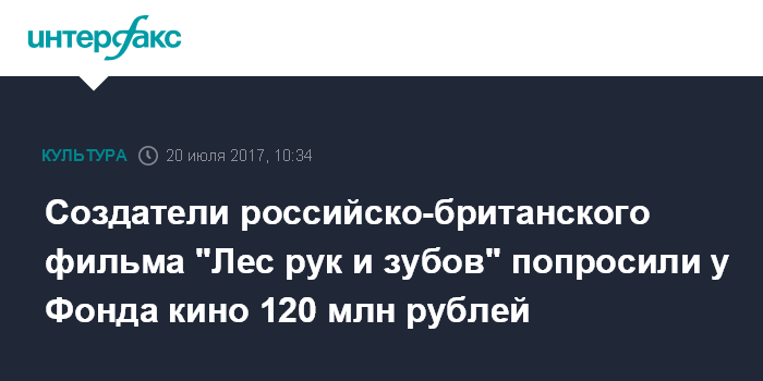 Создатели российско-британского фильма "Лес рук и зубов" попросили у Фонда кино 120 млн рублей