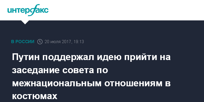 Путин поддержал идею прийти на заседание совета по межнациональным отношениям в костюмах