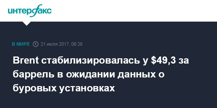 Brent стабилизировалась у $49,3 за баррель в ожидании данных о буровых установках