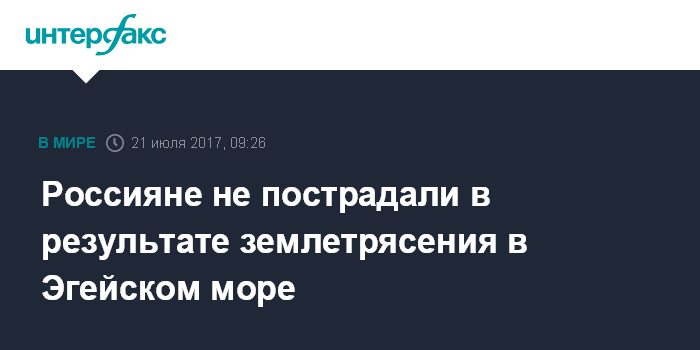 Россияне не пострадали в результате землетрясения в Эгейском море