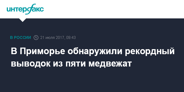 Москва. 21 июля. INTERFAX.RU - Крупная бурая медведица с пятью медвежатами попала в объектив фотоловушки на территории национального парка "Земля леопарда" в Приморье.