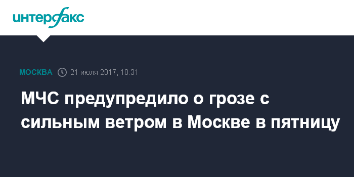 Москва. 21 июля. INTERFAX.RU - Столичный главк МЧС продлил на пятницу предупреждение о сильных порывах ветра и дожде с грозой, сообщили в пресс-службе ГУ МЧС РФ по Москве.