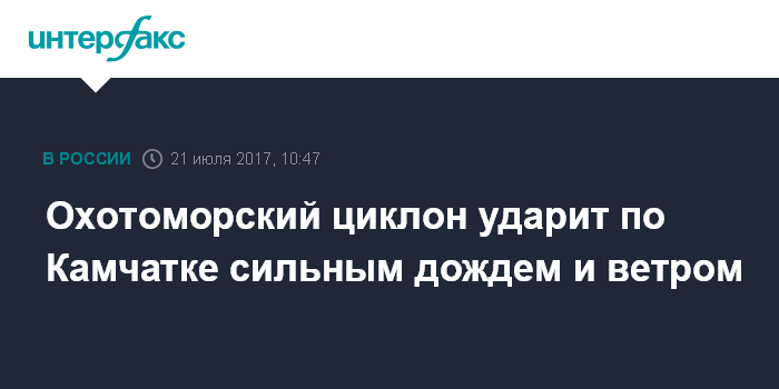 Москва. 21 июля. INTERFAX.RU - Охотоморский циклон начнет оказывать воздействие на западные и южные районы Камчатки в ночь на субботу. Об этом сообщает главное управление МЧС России по Камчатскому краю.