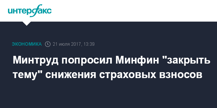 Минтруд попросил Минфин "закрыть тему" снижения страховых взносов