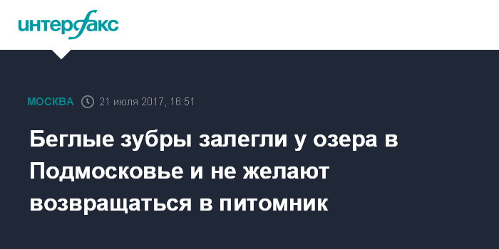Москва. 21 июля. INTERFAX.RU - Зубры, сбежавшие больше недели назад из Приокско-Террасного заповедника, почувствовали свободу и не торопятся возвращаться в свой питомник, сообщила "Интерфаксу" замдиректора заповедника по содержанию и разведению зубров Ирина Землянко.