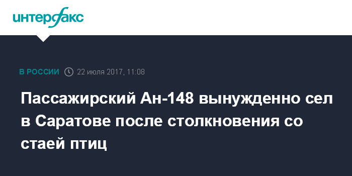 "Командир пассажирского Ан-148 сообщил о столкновении с птицами во время набора высоты, а позднее о подозрении на отказ одного из двигателей. Воздушное судно немедленно было направлено на запасной аэродром в Саратове для выполнения вынужденной посадки", - сказал источник.