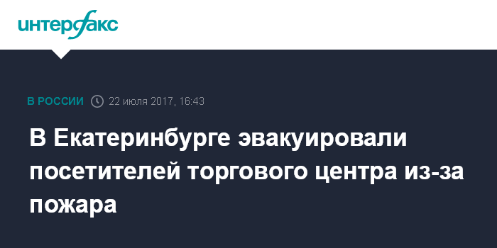 Москва. 22 июля. INTERFAX.RU - Пожар произошел в субботу днем в торговом центре в Екатеринбурге, жертв и пострадавших нет, сообщает пресс-служба ГУ МЧС по региону.