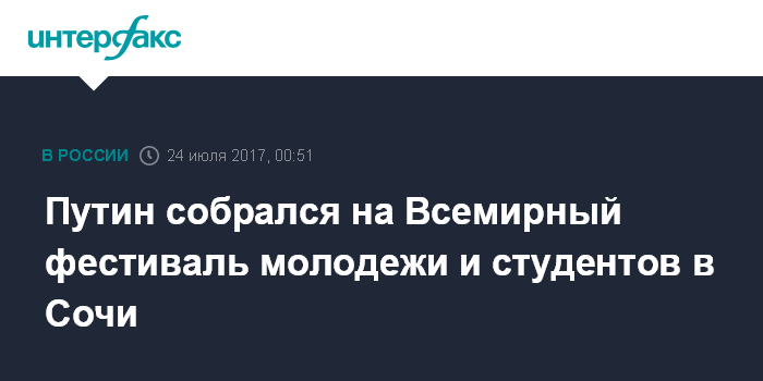 Путин собрался на Всемирный фестиваль молодежи и студентов в Сочи