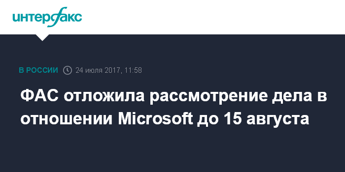 ФАС отложила рассмотрение дела в отношении Microsoft до 15 августа