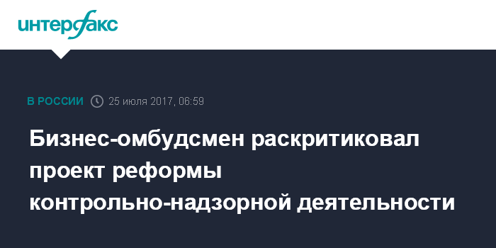 Бизнес-омбудсмен раскритиковал проект реформы контрольно-надзорной деятельности