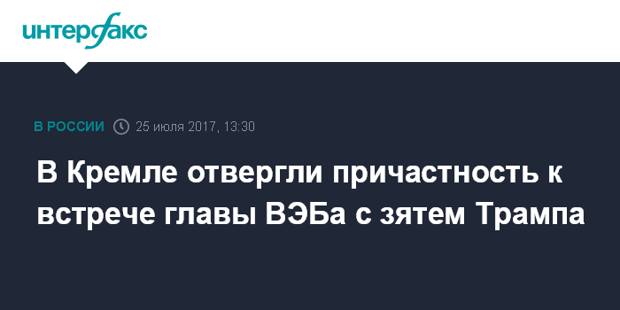 В Кремле отвергли причастность к встрече главы ВЭБа с зятем Трампа