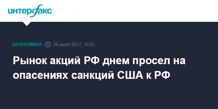 Москва. 25 июля. INTERFAX.RU - Рынок акций РФ днем во вторник просел к 1920 пунктам по индексу ММВБ на сохраняющихся опасениях введения Соединенными Штатами новых антироссийских санкций; динамика цен blue chips разнополярная на фоне волатильности рубля, спросом пользуются бумаги электросетевых компаний.