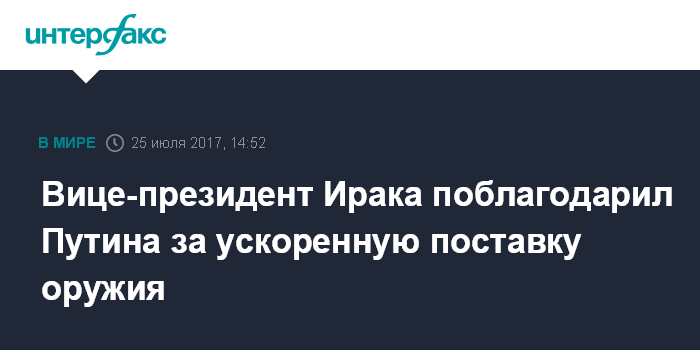 Вице-президент Ирака поблагодарил Путина за ускоренную поставку оружия