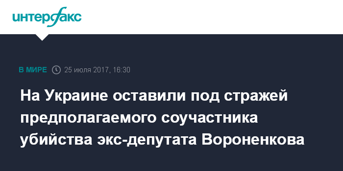 На Украине оставили под стражей предполагаемого соучастника убийства экс-депутата Вороненкова