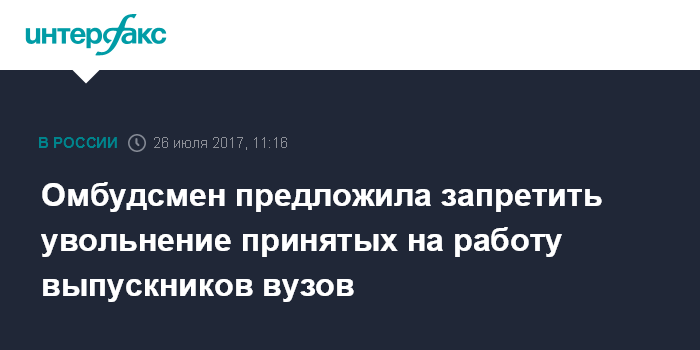 Омбудсмен предложила запретить увольнение принятых на работу выпускников вузов