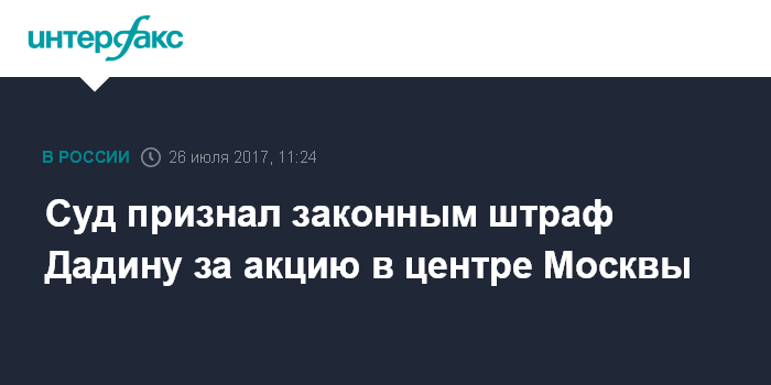 Москва. 26 июля. INTERFAX.RU - Мосгорсуд признал законным административный штраф в размере 20 тысяч рублей, назначенный оппозиционеру Ильдару Дадину за нарушение правил проведения митингов и демонстраций, сообщил "Интерфаксу" представитель активиста Николай Зборошенко.