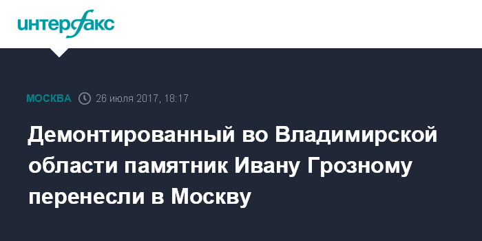 Демонтированный во Владимирской области памятник Ивану Грозному перенесли в Москву