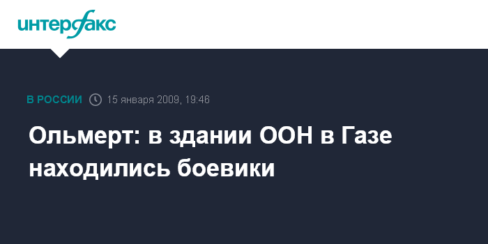 Ольмерт рассказал генеральному секретарю ООН Пан Ги Муну, что в здании, в котором размещается агентство ООН по оказанию помощи палестинцам, находились вооруженные люди. Они начали обстреливать военных, и поэтому по зданию открыла огонь израильская артиллерия.