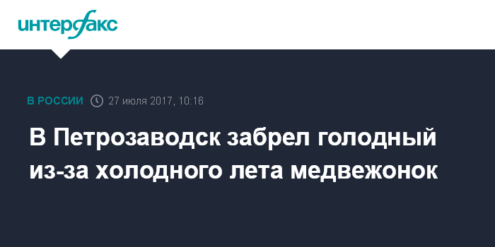 В Петрозаводск забрел голодный из-за холодного лета медвежонок