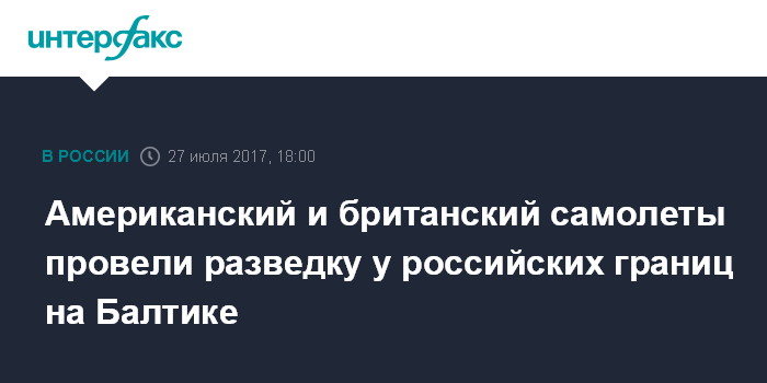 Американский и британский самолеты провели разведку у российских границ на Балтике