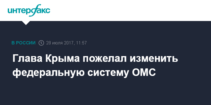 Москва. 28 июля. INTERFAX.RU - Система обязательного медицинского страхования (ОМС) нуждается в изменениях, чтобы обеспечить возможность быстрого доступа к конкретным специалистам в Крыму, считает глава республики Сергей Аксенов.