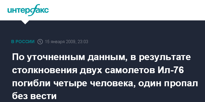 По уточненным данным, в результате столкновения двух самолетов Ил-76 погибли четыре человека, один пропал без вести