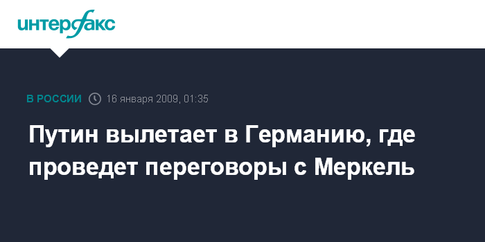 Москва. 16 января. ИНТЕРФАКС - Премьер-министр РФ Владимир Путин вылетает в пятницу с двухдневным рабочим визитом в Германию, где проведет переговоры с канцлером ФРГ Ангелой Меркель и посетит сельскохозяйственную выставку "Зеленая неделя".