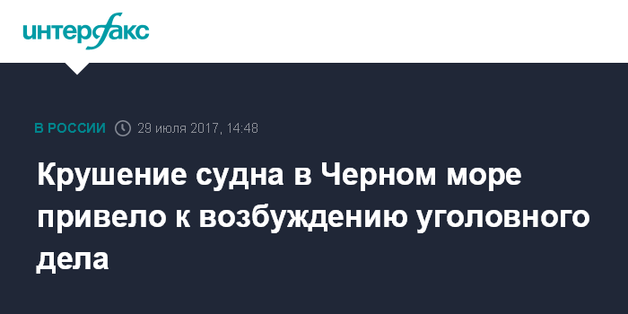 Москва. 29 июля. INTERFAX.RU - Следственные органы Главного следственного управления СКР по республике Крым в связи с затоплением в Черном море судна Anda возбудили уголовное дело по признакам состава преступления, предусмотренного частью 2 статьи 263 УК РФ (нарушение правил безопасности движения и эксплуатации морского и внутреннего водного транспорта, повлекшее причинение крупного ущерба либо повлекшее по неосторожности смерть человека), сообщил в субботу Следственный комитет.