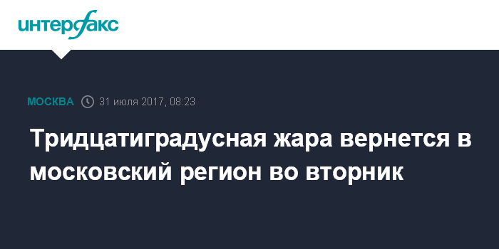 Москва. 31 июля. INTERFAX.RU - Жаркая погода после небольшого перерыва, связанного с сильными дождями, восстановится в Москве и Подмосковье, сообщает Гидрометцентр России.