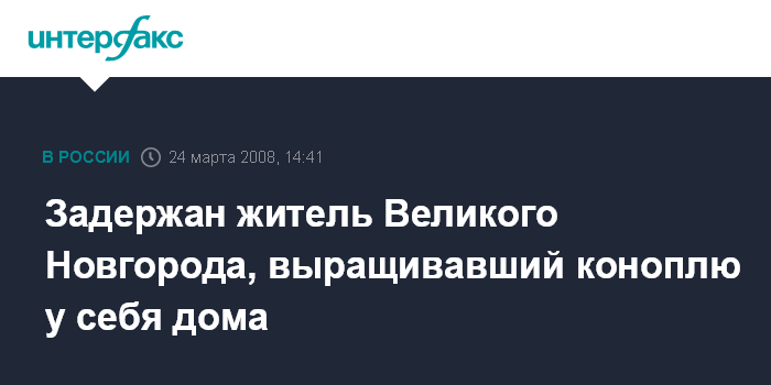 Великий Hовгород. 24 марта. INTERFAX.RU - В Великом Hовгороде задержан мужчина, который оборудовал в своей квартире автоматизированную мини-теплицу по выращиванию конопли, сообщила "Интерфаксу" пресс-секретарь новгородского управления наркоконтроля Марина Кононова.