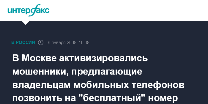 В Москве активизировались мошенники, предлагающие владельцам мобильных телефонов позвонить на "бесплатный" номер