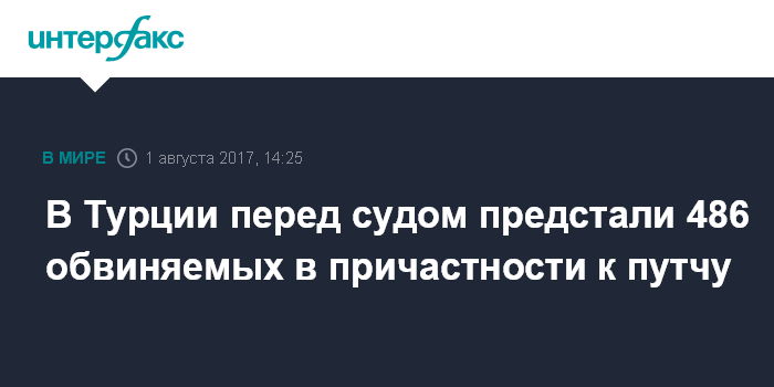 Москва. 1 августа. INTERFAX.RU - Почти 500 человек предстали перед судом в Турции по обвинению в участии в попытке госпереворота, сообщают во вторник турецкие СМИ.