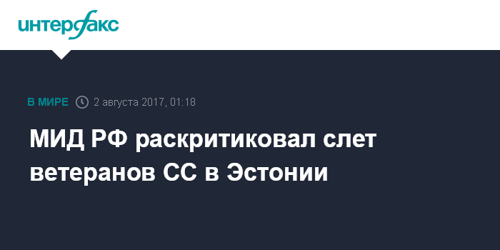 Москва. 2 августа. INTERFAX.RU - Слет ветеранов эстонской 20-й дивизии "Ваффен-СС", который проходил в Синимяэ (Эстония), противоречит решению Совета ЕС по борьбе с некоторыми формами и проявлениями расизма и ксенофобии, говорится в сообщении министерства иностранных дел РФ, опубликованном на официальном сайте ведомства.