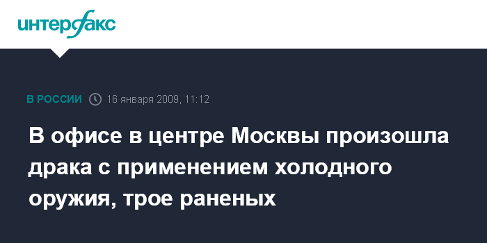 В офисе в центре Москвы произошла драка с применением холодного оружия, трое раненых