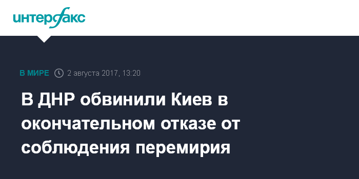 Москва. 2 августа. INTERFAX.RU - В самопровозглашённой Донецкой Народной Республике заявили, что украинская сторона перестала придерживаться "хлебного перемирия".