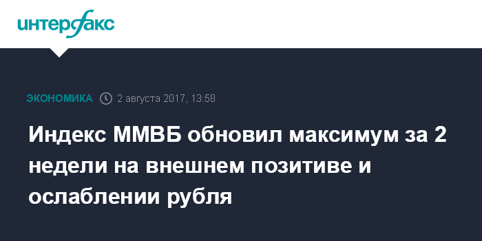 Индекс ММВБ обновил максимум за 2 недели на внешнем позитиве и ослаблении рубля