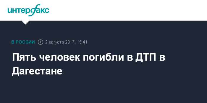 "Трагедия произошла на автодороге между населенными пунктами Бабаюрт и Сурикент сегодня примерно в 15:00. Пять человек погибли при столкновении автомобилей "Лада-Калина" и ВАЗ-2111", - сказал собеседник агентства.
