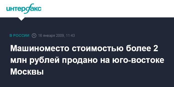 Москва. 16 января. INTERFAX.RU - На прошедшей неделе на Привольной улице было продано машиноместо стоимостью более 2 млн рублей, сообщил "Интерфаксу" руководитель Специализированного государственного унитарного предприятия по продаже имущества города Москвы Владимир Авеков в пятницу.