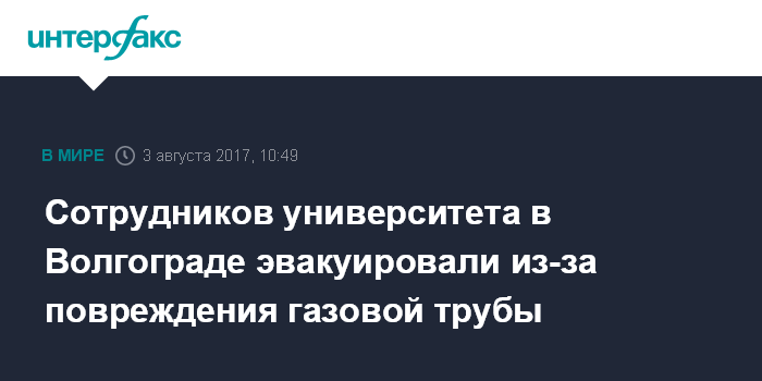 Москва. 3 августа. INTERFAX.RU - При проведении земляных работ возле Волгоградского государственного социально-педагогического университета рабочие повредили газовую трубу, сообщил представитель регионального главка МВД Антон Корнаухов.