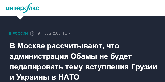 В Москве рассчитывают, что администрация Обамы не будет педалировать тему вступления Грузии и Украины в НАТО