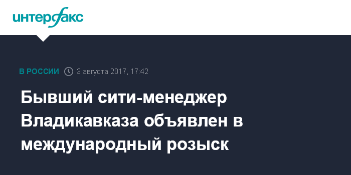 Бывший сити-менеджер Владикавказа объявлен в международный розыск