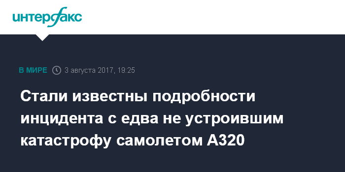 Стали известны подробности инцидента с едва не устроившим катастрофу самолетом A320
