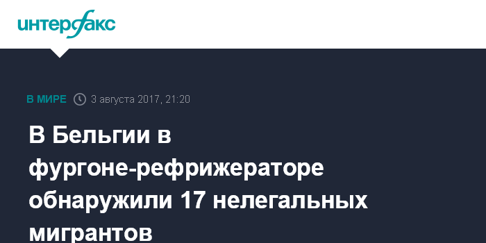 Москва. 3 августа. INTERFAX.RU - Бельгийский водитель грузовика-рефрижератора, услышав шум в своем фургоне, остановил автомобиль в четверг в местечке Комин в провинции Эно и вызвал полицию, которая обнаружила в холодильнике живыми и невредимыми 17 иммигрантов.