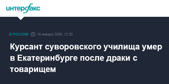 Екатеринбург. 16 января. INTERFAX.RU - Следственный отдел по Октябрьскому району Екатеринбурга СУ СКП РФ по Свердловской области возбудил уголовное дело по факту гибели курсанта суворовского училища.