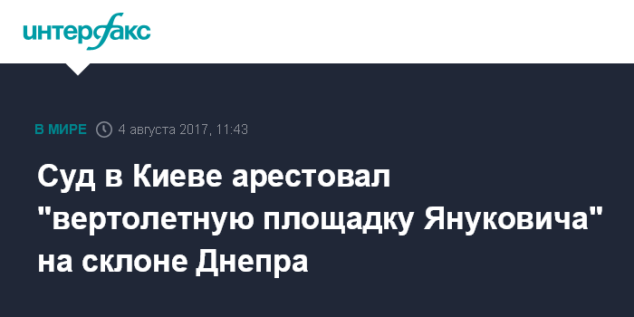 Москва. 4 августа. INTERFAX.RU - Апелляционный суд Киева наложил арест на земельные участки площадью более 2 га и расположенную на них недвижимость, которые принадлежат ООО "Амадеус Ко", в том числе так называемую "вертолетную площадку Янковича" - бывшего президента Украины, сообщил генеральный прокурор Украины Юрий Луценко в фейсбуке.