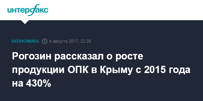 Москва. 4 августа. INTERFAX.RU - Заместитель председателя правительства РФ Дмитрий Рогозин заявил о значительном росте производства на предприятиях Крыма и Севастополя.