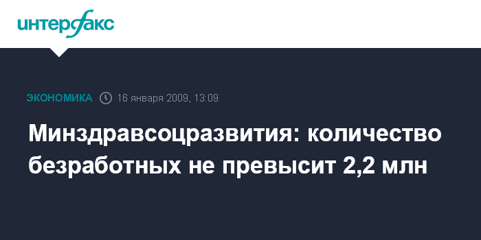 Минздравсоцразвития: количество безработных не превысит 2,2 млн