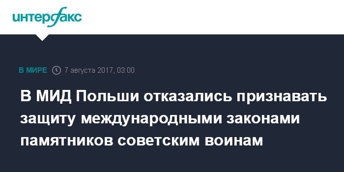 В МИД Польши отказались признавать защиту международными законами памятников советским воинам