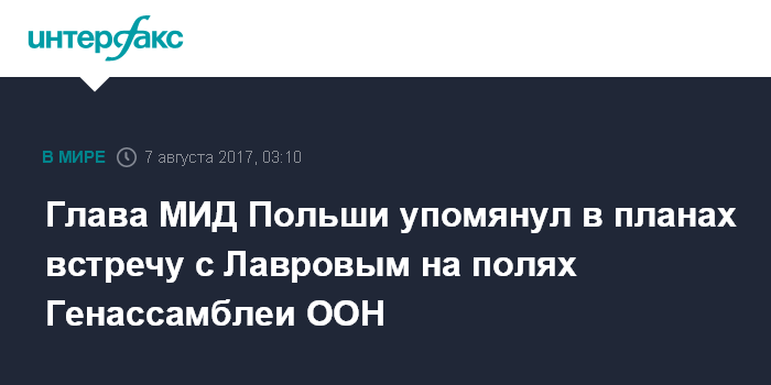 Глава МИД Польши упомянул в планах встречу с Лавровым на полях Генассамблеи ООН