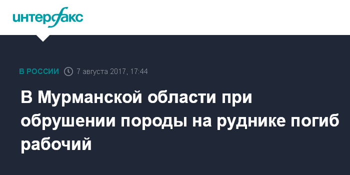Москва. 7 августа. INTERFAX.RU - Следственные органы СКР по Мурманской области возбудили уголовное дело по факту гибели рабочего при обрушении горной породы на руднике в Ловозерском районе. Об этом сообщила пресс-служба ведомства в понедельник.
